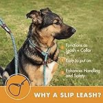 ONE SIZE FITS ALL, 6-feet long and 1/2 inch thick cord, Adjustable noose for flexible sizing and equipped with choke guard buckle to prevent choking, This slip leash fits Large and Small Breeds