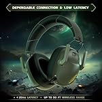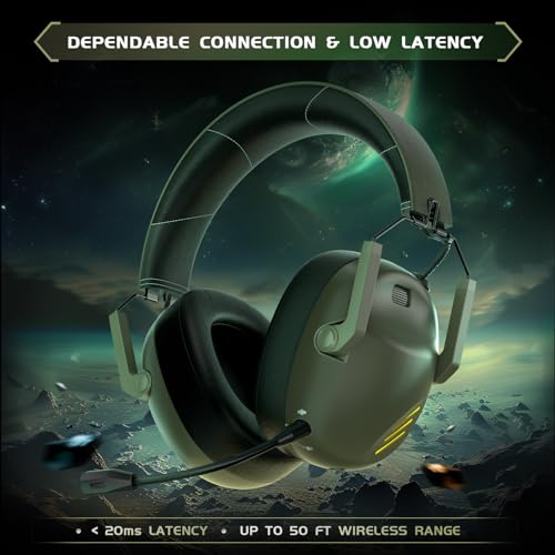 🎧【𝟐.𝟒𝐆𝐇𝐳 𝐖𝐢𝐫𝐞𝐥𝐞𝐬𝐬 & 𝟓.𝟑 𝐁𝐥𝐮𝐞𝐭𝐨𝐨𝐭𝐡】Experience gaming like never before with the Captain 600 wireless gaming headset green. Boasting the state-of-the-art ATS3031 chip, it offers unmatched connectivity through 2.4GHz lossless wireless tech, ensuring a stable connection spanning up to 49 feet. The ps5 headset delivers exceptional sound quality with low latency (≤20ms) and 50mm drivers for a 40% audio impact boost. Immerse yourself in your games with precision, as you pinpoint directional cues, footsteps, etc.