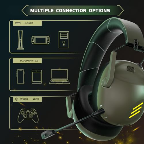 Gaming Headsets Wireless for PS5, PS4, Nintendo Switch, Bluetooth 5.3 Gaming Headphones Wireless with Noise Canceling MIC, 50H Battery, ONLY 3.5mm Wired Mode for Xbox Series – Green
