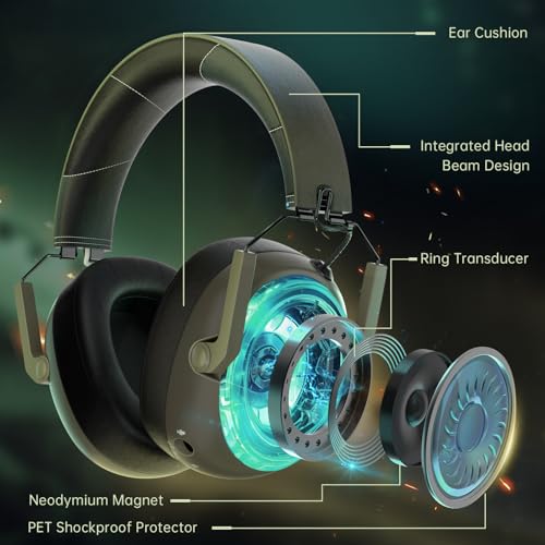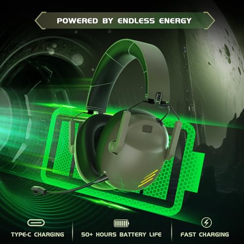 🎧【𝟑 𝐌𝐨𝐝𝐞 𝐂𝐨𝐧𝐧𝐞𝐜𝐭𝐢𝐨𝐧 & 𝐌𝐮𝐥𝐭𝐢-𝐏𝐥𝐚𝐭𝐟𝐨𝐫𝐦 𝐒𝐮𝐩𝐩𝐨𝐫𝐭 】This gaming headsets green stands out with its unique, tactical-inspired form factor, making a bold style statement. With a staggering battery life of over 50 hours on a single charge, it outlasts the competition. Plus, a quick three-hour charge fills it to the brim, ensuring you’re back in the game in no time. Get ready for an unrivaled gaming experience that combines distinctive design and lasting power.