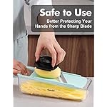 • 🍅Safe to Use – Our mandoline slicer for kitchen is made of food grade ABS material, without BPA and you can make healthy meals for your family. Plus, the vegetable slicer cutter also provides hand guard which can protect your hands from touching blades.
