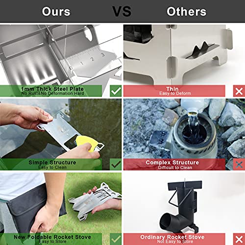➤【More Efficient Combustion】This rocket stove is designed and upgraded by using the chimney effect concept.It burns more efficiently and saves fuel. By starting combustion, hot air rises and cold air is sucked up more and more from below, creating a draft phenomenon to improve combustion utilization efficiency and create powerful thermal power.