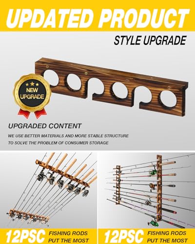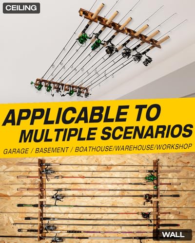 Home Camping Fishing Gear Ghosthorn Holds Up to 12 Rods Fishing Pole Rod Racks Wall or Ceiling Mounted Fishing Pole Rod Holders for Garage Storage Organizer Fishing Gear Equipment Gifts for Men Women