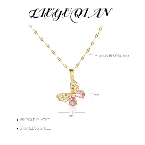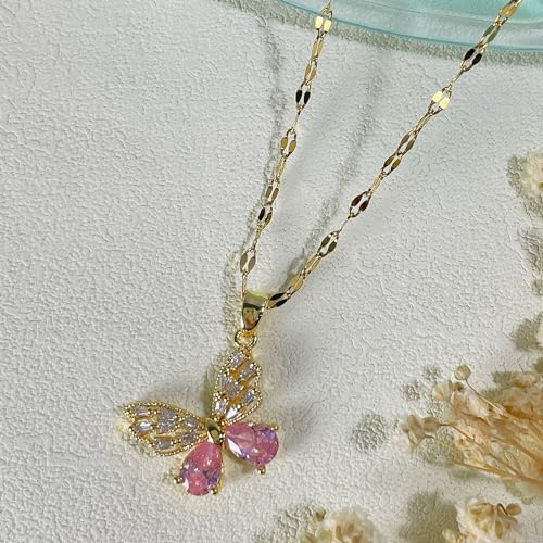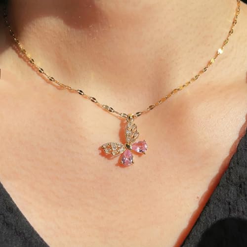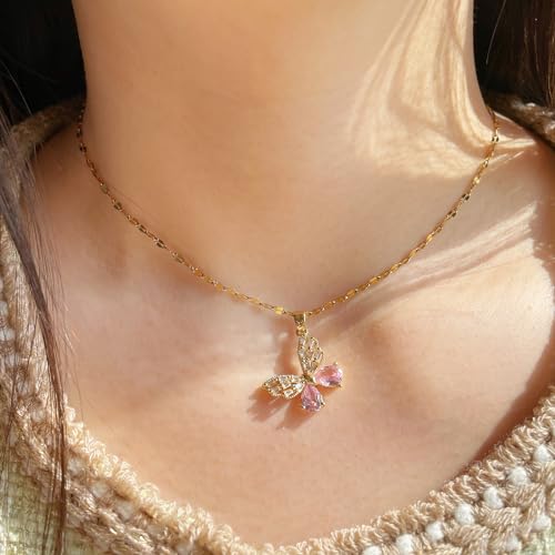 Gold Butterfly Necklace for Women – Dainty Gold Pendant Necklaces Cubic Zirconia Necklace, Butterfly Jewelry Gifts for Women, Teen Girls