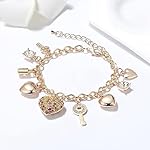 Gold Chain Link Bracelet – 7″+ 2″ Extender 14K Gold Plated Love Locked Bracelets for Women and Girls, with Crystal, Love Heart,Key, Lock, Charm Bracelet
