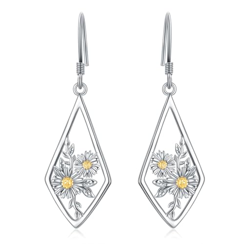 Flower Earrings Sunflower/Daisy/Rose/Tulip/Scottish Thistle/Lotus/Mushroom/Iris/Astronaut Dangle Drop 925 Sterling Silver Leverback Earrings Jewelry Gift for Women Girls $28.99