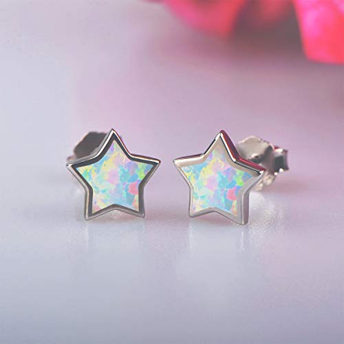Gold Star Earrings for Girls, Hypoallergenic Fire Opal Stud Earrings For Women ARSKRO S925 Sterling Sliver Little Small Tiny Cute Earring Jewelry Gifts for Sensitive Ears Toddlers Kids