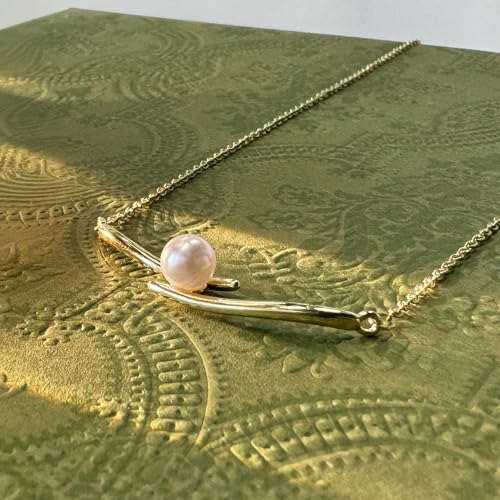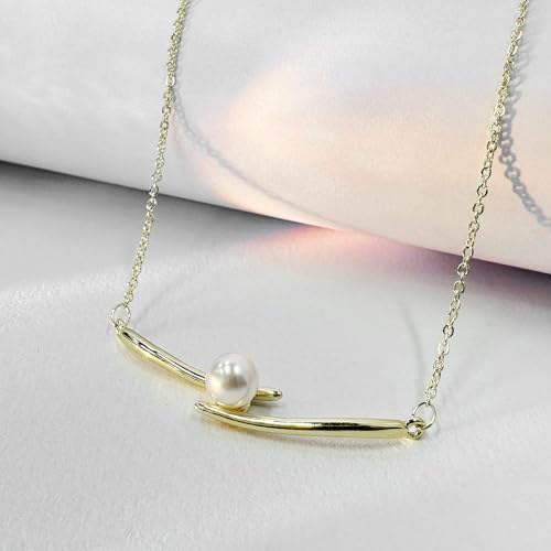 Gold Tone Chain Choker Necklace with Pearl Accent