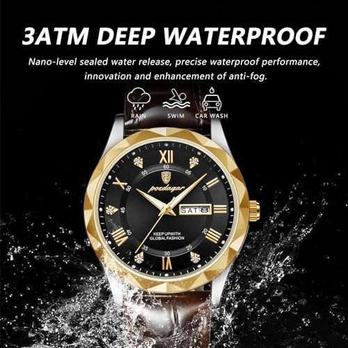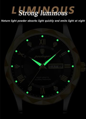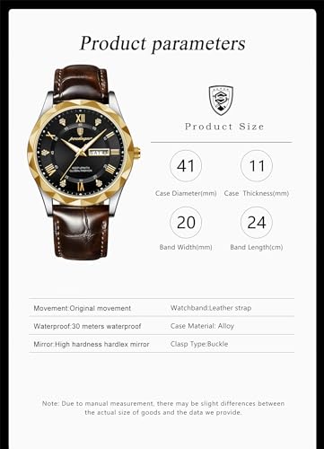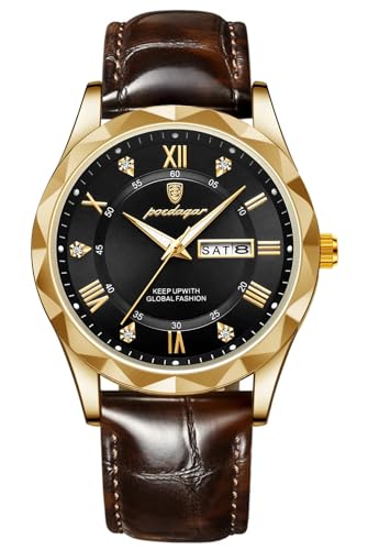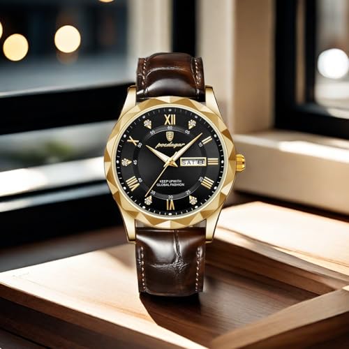 Gosasa Fashion Men’s Business Casual Quartz Luminous Waterproof Date Wristwatch with Leather Strap