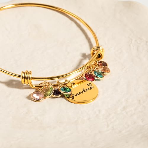 Grandma Birthstone Bangle Bracelet, Children Birthstone Gift for Mom, Handmade Jewelry Gift, Personalized Gift for Her, Ruby Birthday gift for Grandma -ABR-LC-MBS