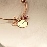 ITEM SPECIFICATION: -Disc Pendant: approx. 0.7” in diameter (18mm), -Birthstone Charm: 0.35″ x 0.27″ (9mm×7mm), -Bracelet Width H: approx. 2.5” in diameter (6.35 cm), -Bracelet Length : approx. 8” (20cm)
