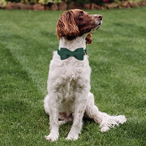 Green Dog Collars for Medium Dog,Cute Corduroy Dog Collar with Bow Tie Safety Metal Buckle Adjustable Puppy Collars for Small Medium Large Boy&Girl Dogs,M-Neck 13.5″-22″