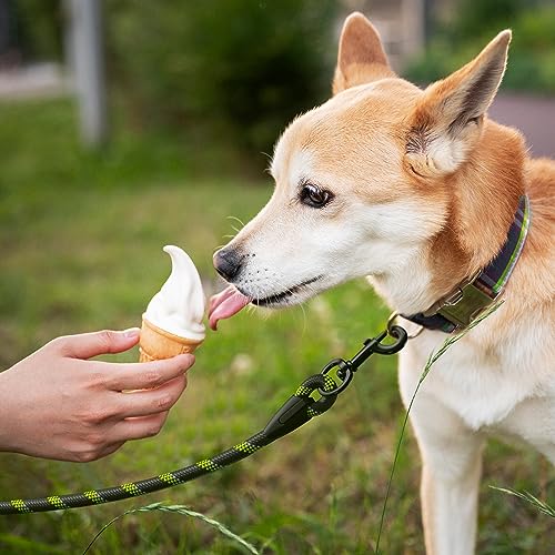SOFT PADDED HANDLE: Enjoy comfort with our green dog leash soft neoprene padded handle. Prevents hand fatigue and rope burns, ensuring a secure grip for every training, walking, and hiking adventure.