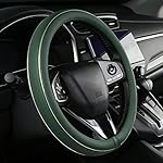Green Leather Steering Wheel Cover Fiber Strip Car Steering Wheel Cover Universal 15 inch