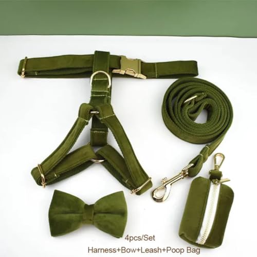Home Pet Supplies Leashes Green Velvet Dog Collar and Leash Set Dogs Pet Supplies Dog Leash Velvet