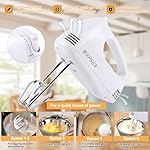 Electric Handheld Mixer: With 200 Watt powerful motor and 5 speeds light weight hand held mixer can help to find the right speed for every mixing task. You can slowly increase speed for optimal mixing consistency and to prevent messes. The kitchen hand mixer include 2 stainless steel beaters,2 balloon whisks. The attachments are dishwasher-safe and easy to remove with press button.
