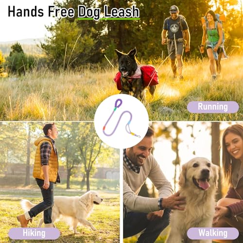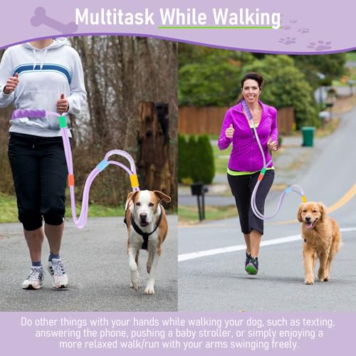 VTOPVMAX Hands Free Dog Leash, Adjustable Waist Leash dog Walking, Crossbody Rope with Explosion-Proof Handle, Double Dog Rope Leash, Dog Leash for Large Dogs (Purple)
