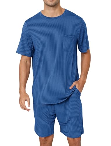 EISHOPEER Matching Pajamas for Couples 2 Piece Lounge Set Ribbed Knit Pajama Matching Tops and Shorts Soft Sleepwear S-XXL $19.99