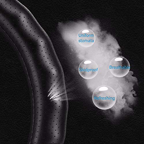 SOFT & COMFORTABLE TOUCH: Using a real leather streeing wheel cover to help absorb hand pressure from the steering wheel. It’s soft and durable with a breathable touch.