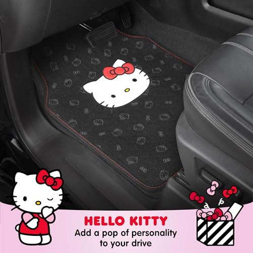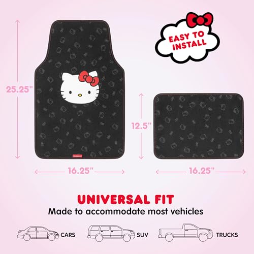 Hello Kitty Carpet Car Floor Mats – Universal Fit for Cars, SUVs & Trucks – Black with Red Bow & Hello Kitty Print – Front & Rear Set, 4 Piece Car Accessories