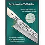 [Humanized Craftsmanship] The blade is made of 67 layers of real Damascus forging steel. The hammered surface is polished and sandblasted so it is not easy to stick food when cutting food. The innovative craftsmanship of ARC at the fingertip, root , and back of the blade can reduce the pressure between fingers and blade edge to protect your hand from injury during long periods of use. Our knives are more durable and sharp after 12 processes of knife making.