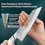 [Stylish & Ergonomic Handle] The material of ivory white G10 is insulated, corrosion-resistant, and abrasion-proof, which is widely used in handles of Damascus steel kitchen knives for its excellent stability. The 410 stainless steel rivet embedded in the handle makes it more elegant. This classic and stylish ivory white handle is comfortable in hand to control, which fits the aesthetic of the urban kitchen.