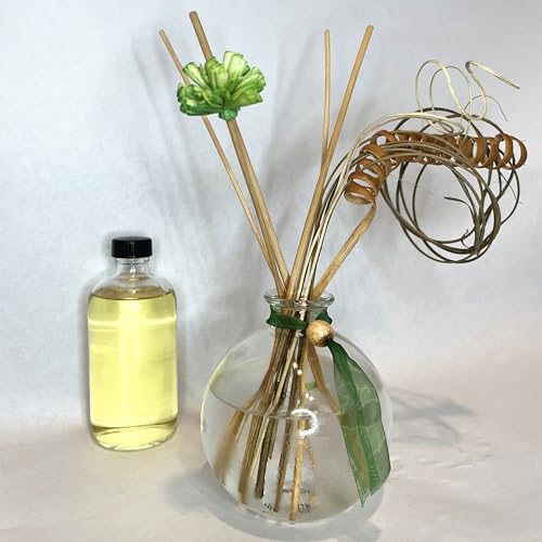 MEASUREMENTS/MATERIAL: Made of glass bottle and reed diffuser sticks. bottle size: 4.72″ H x4.33″ D. diffuser oil is 200ml.