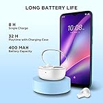 【32H Playtime & Fast Charging】Bluetooth wireless earphones supports fast charging. The earbuds on a full charge can meet 8 hours while listening volume 50%; The charging case can be charged for more than 4 times and the earbuds can be fully charged within 40 minutes.