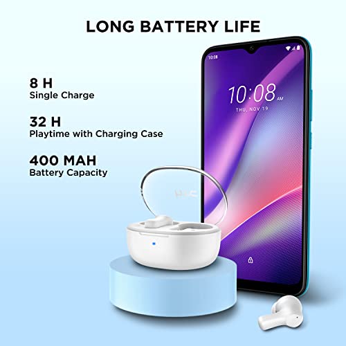 HTC True Wireless Earbuds 1 Bluetooth Earphones, in-Ear Headphone ENC Noise Cancellation Transparent Space Capsule, 32-Hour Playtime/Built-in Microphone/Touch Control -Crystal White