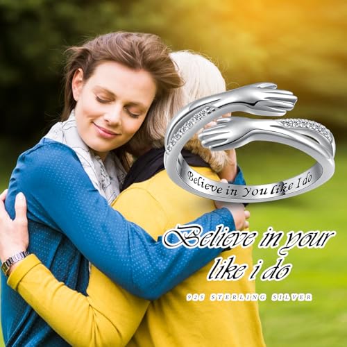 Hug Ring, S925 Sterling Silver Hug Rings for Women Girl, Hugging Hand Open Promise Ring, Mothers Day Valentine’s Day Birthday Gifts