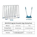 Large Reusable Bags Drying Rack: Dimensions:8.1 inch*7.1 inch*3.5 inch with 8 rungs which will dry multiple gallon freezer bag and other kitchen tools, perfect size bags drying rack will works great for drying plastic bags, reusable storage bags, gallon bags, large storage bags, snack bags, sandwich bags,food bag, plastic storage bags.