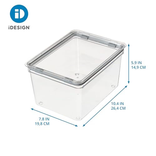 Achieve complete home storage and organization with the iDesign Fresh Collection Large Tall Dry Goods Storage Bins with Lid. The perfect combination of style and function, the recycled plastic storage bins have a sleek design for space saving storage. This pantry storage bin is ideal for storing produce, meats, cheeses, and more in the refrigerator or freezer. Or use the refrigerator organizer container to store dry goods such as bottles, jars, boxes, snack bags, pouches, packets, and more in the pantry. The freezer organizer bin is also great for storing smaller quantities of baking supplies such as flour and sugar, oats and cereal, rice and pasta, nuts and trail mix, and other ingredients. The finish on the clear box allows you to always see what’s in these organizer bins. The recycled plastic bin measures 7.85” L x 10.85” H x 6” W to create instant organization in compact spaces around the home. Ideal for use as organization bins in the refrigerator, freezer, or pantry. Crafted from recycled plastic, this iDesign plastic storage bin is built to last. With iDesign, you can live simply every day.