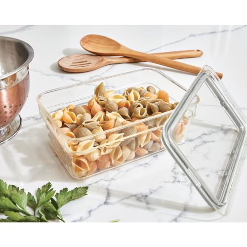 DRY GOODS STORAGE BIN – Achieve complete home organization with the iDesign Dry Goods Short Bin with Lid; the perfect combination of style & function, this plastic container has a sleek design for space saving storage in the fridge, freezer, or pantry