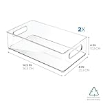 iDesign Plastic Pantry and Kitchen Storage Freezer and Fridge Organizer Bin with Easy Grip Handles, 14.5″ x 8″ x 4″, Clear, 2 Count