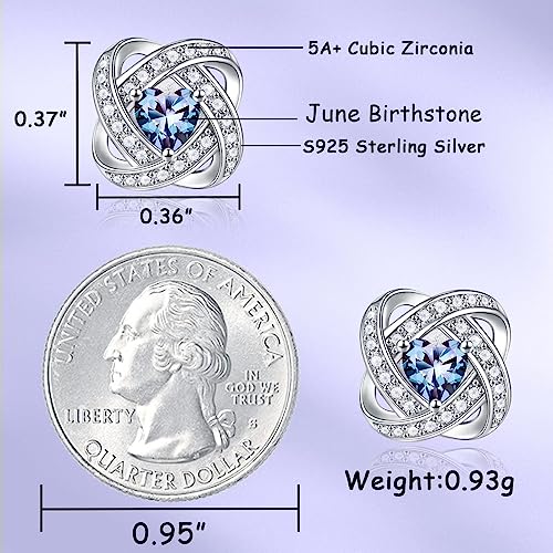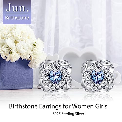 Iefil Love Knot Birthstone Earrings for Women, S925 Sterling Silver Earrings Anniversary Valentines Day Gifts for Her Mothers Day Birthday Gifts for Women Wife Mom