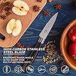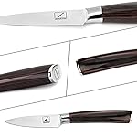 - Razor-sharp Blade Edge – The blade of this 3.5” paring knife is hand polished and the band-sharpened is 9°-15° pro razor edge per side cutting angle. Taper-ground design ensuring the professional paring knife added stability, long-lasting sharpness and effortless precision cutting.