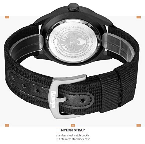 Infantry 5ATM Waterproof Mens Military Tactical Field Watch, Date & Day 12/24Hr Display Watches for Men, Casual Quartz Wristwatch with Nylon Strap