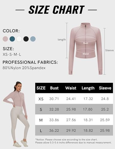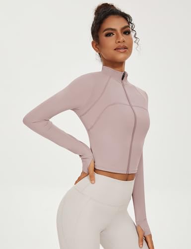 Ivicoer Full Zip Cropped Jackets Workout Tops for Women Yoga Athletic Jacket with Thumb Holes