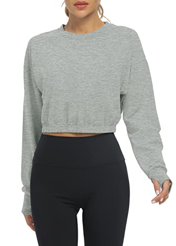 Bestisun Long Sleeve Cropped Workout Shirts Athletic Gym Yoga Crop Tops for Women $22.98
