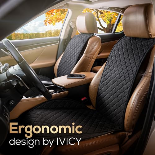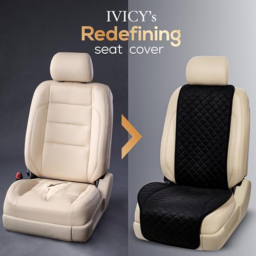 IVICY Suede Car Seat Cover for Cars – Non-Slip Soft & Breathable – Front Car Seat Protector Covers Universal Fits Most Automotive, Vans, SUVs, Trucks – 1 Unit – Black