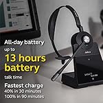 ALL-DAY BATTERY – Get up to 13 hours of talk time with this Jabra headset. When you do need to charge, the fast charge feature powers your call center headset to 40% in just 30 minutes and 100% in 90 minutes.