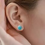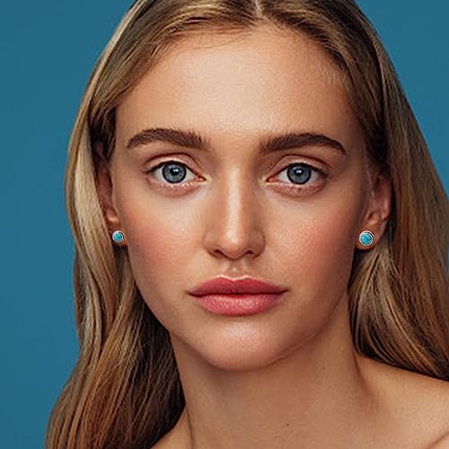 Jewelry for Women Round Shape Turquoise Stud Earrings Small Stud Earrings Fashion Trendy Silver Xmas Jewelry Gifts