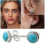 Home Jewelry Earrings Jewelry for Women Round Shape Turquoise Stud Earrings Small Stud Earrings Fashion Trendy Silver Xmas Jewelry Gifts