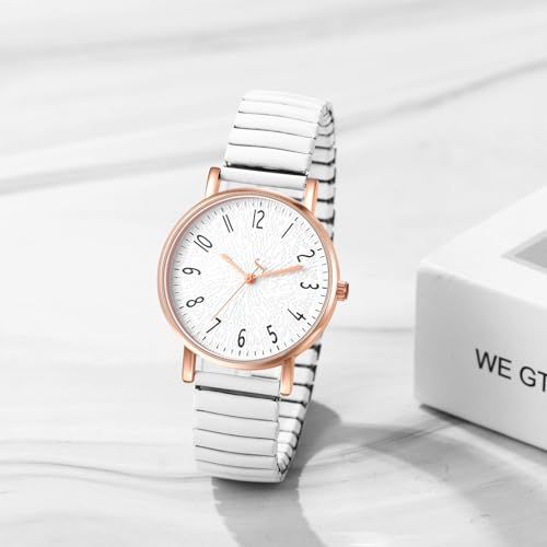 JewelryWe Elastic Watches for Women Easy Reader Round Analog Quartz Stretch Band Wristwatch for Xmas