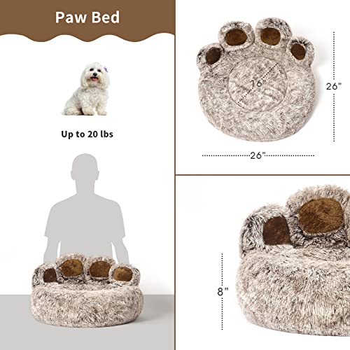 Jiupety Pet Round Bed of Paw Shape, Calming Donut Dog Bed for Medium and Small Dog, Faux Fur Cat Bed, Comfortable and Soft, Machine Washable, Large Size (26″×26″×8″), Gray