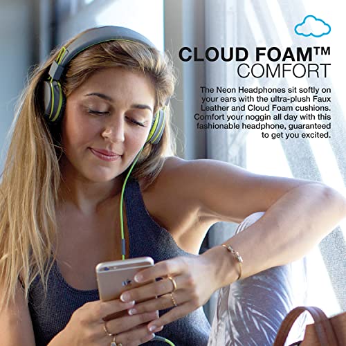 INCREDIBLE SOUND. AMAZING COMFORT.Rock-star comfort. Without the hassle of touring. Instantly boost your mood with electric colors, a smooth, sleek look, and radical sound. While you’re listening to pristine tunes cruising campus, hitting the beach, or getting in the zone, you’ll be sure to stand out and turn heads – without the rock star price tag. With the Neon Headphones you can #ROCKITOUT anytime, anywhere.GET COMFYThe Neon Headphones sit softly on your ears with the ultra-plush Eco Leather and Cloud Foam cushions. Comfort your noggin all day with this fashionable headphone, guaranteed to get you excited to #HookItUp.STYLISH SOUNDThe stylish dual colored Neon Headphones are outfitted to pack a punch with 40mm neodymium drivers and JLab’s exceptional C3 Technology (Crystal Clear Clarity). Immerse yourself in vibrant highs, mids and pumping bass while drowning out the world around you during an all-day jam sesh.TANGLE FREEWhereever, whenever: Hook up the tangle free, braided-nylon cord equipped with an in-line mic for taking calls, firing up your tunes, pausing them and controlling the tracks on your mix. The 90 degree jack rocks with all devices and cases.MUSIC TO-GOBuilt for everyone who loves to rock n’ roll, the smooth-sliding metal adjustments and feather-light build are ready to hit the road. The plush circular ear cups rotate 80 degrees and fold up in the palm of your hand so you can bring them wherever life takes you, on or off tour.