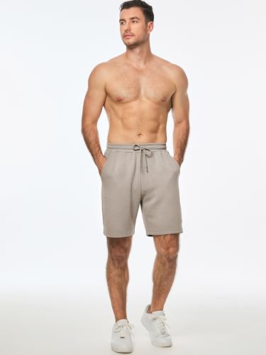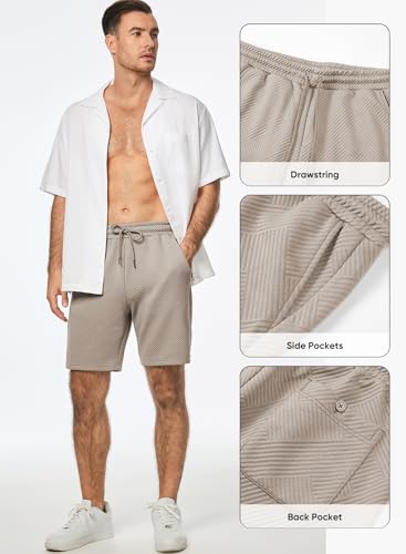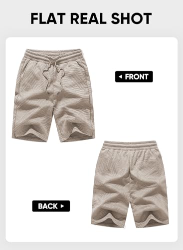 JMIERR Mens Casual 7″ Shorts Texture Summer Drawstring Elastic Waist Beach Sweat Shorts with Pockets