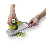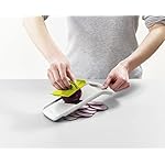 This handy gadget helps to create even slices of fruit or vegetables quickly and easily, whilst keeping your fingers safely away from its sharp stainless-steel blade. Unlike other mandolines, it has a precision food grip that allows you to slice a variety of items of differing shapes and sizes. It features a pinch grip for small items such as radishes or garlic cloves; a center grip for slicing rounds from carrots or cucumber; and a flat grip for creating longer slices from foods such as onions or courgettes. It has a non-slip tip and, after use, the food grip locks across the blade for safe storage.