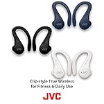 The Sport Clip trure wireless earbuds are comfortable and include S/M/L earpieces and open type earpeices for your ideal fit. The IPX5 rating offers water resistance to splashing, making this pair ideal for outdoor use. Bluetooth 5.1 technology ensures a dependable connection. These JVC wireless headphones come with a compact charging case, delivering up to 30 hours of playback.