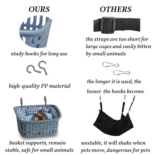 Safe and Sturdy: The basket is made of high-quality PP material, which has strong bearing capacity and has no smell. The long-lasting hooks can hold your pets safely. The design is different and stronger than other thin and fragile hammocks that your pet will chew